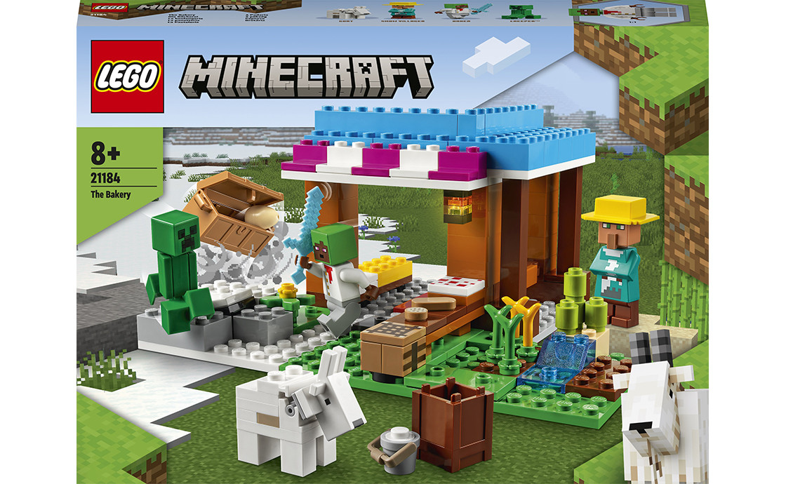 - Універсальний ігровий набір — набір LEGO Minecraft «Пекарня» (21184), повний пригод, наповнений захопливими іграми, випічкою та битвами.